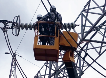 高所作業車などを使用して、架線や電線(母線)、絶縁物等の修繕・取替工事を行います。